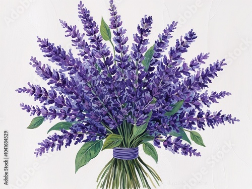 © Arceli, Fototapeta premium Blue and lavender verbena bouquet hand drawn painted painting illustration on plain white background