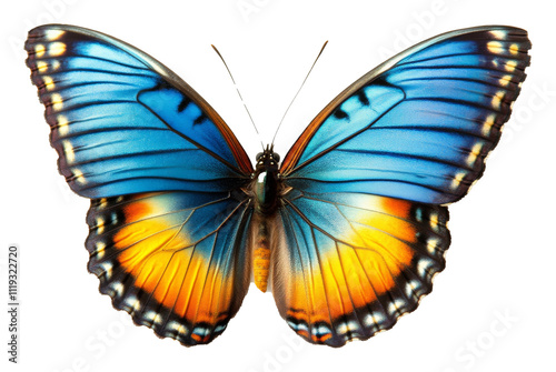 Fototapeta premium Blue and orange butterfly with detailed wings against transparent background