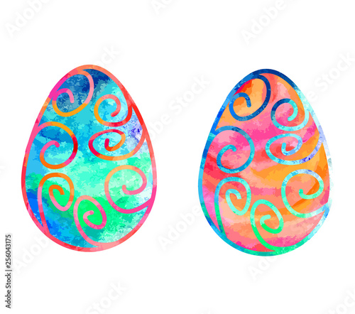 © Елизавета Беляева, Fototapeta premium Blue and orange Easter eggs with tracery and texture
