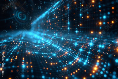 © Adobe Contributor, Fototapeta premium Blue and orange glowing grid with binary code