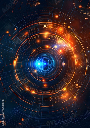 © duyina1990, Obraz premium Blue and orange technology background