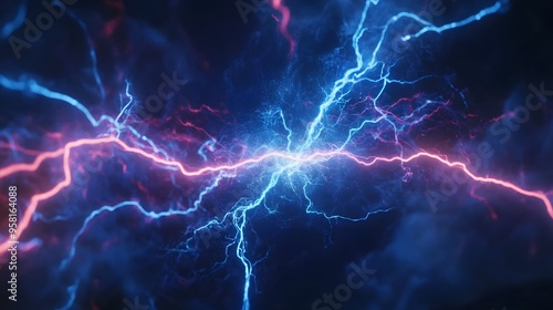 Obraz premium Blue and pink electric lighting, abstract electrical background