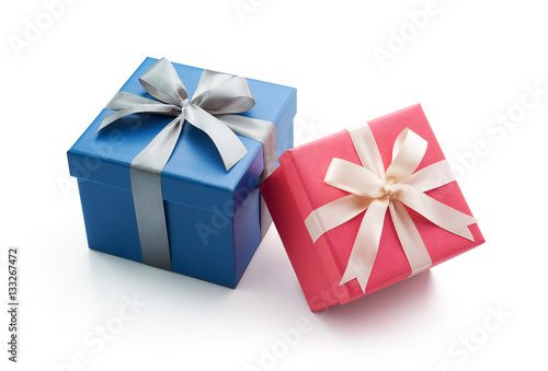 © phive2015, Obraz premium Blue and Pink Gift Box Isolated on White