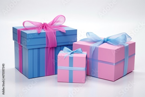 Fototapeta premium blue and pink gift boxes of the same size and shape