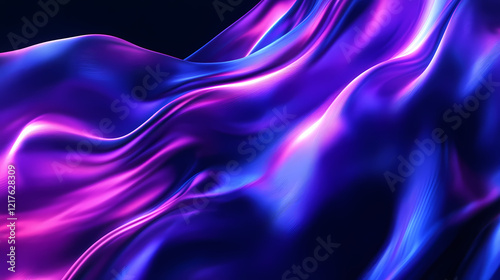 © Thiago, Obraz premium Blue and purple abstract flowing light wave on black background. Mystic Wave. Illustration