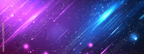 © Lukas, Fototapeta premium Blue and purple background with a gradient, diagonal lines of light and stars