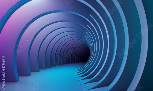 © EF Studio, Naklejka premium Blue and purple background with three-dimensional spiral shape, 3D rendering, abstract style, geometric lines