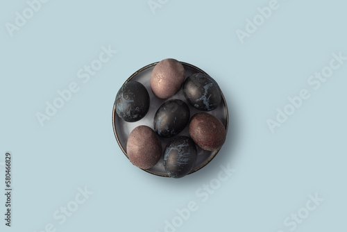 © anna, Obraz premium Blue and purple easter eggs on a blue background