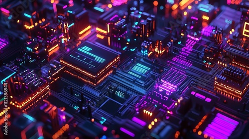 © Aqeel Siddique, Obraz premium Blue and Purple Technology Background with Circular Patterns and Digital Elements