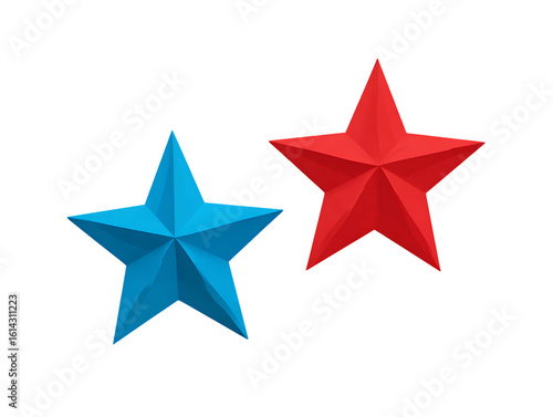 © CrystallineCreative, Obraz premium Blue and Red Five Pointed Stars on Transparent Background, PNG