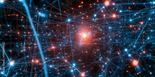 © Murda, Obraz premium Blue and red lines connect glowing points.