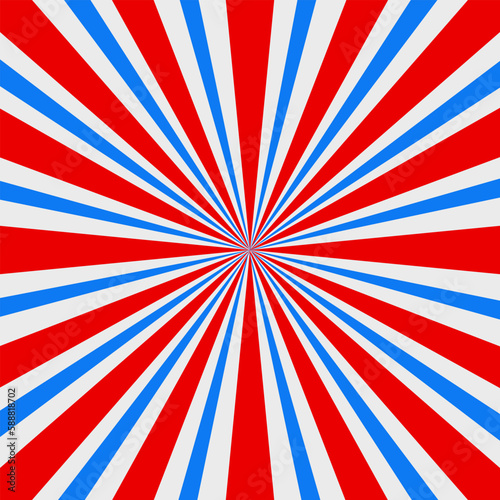 Fototapeta premium Blue and red sunburst abstract background on white color.