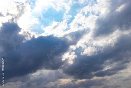 Fototapeta premium Blue and smoggy cloudy sky in Brest Belarus.