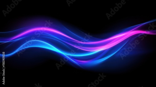 © Johannes, Fototapeta premium Blue and ultraviolet neon laser glowing curved wavy lines abstract background. Vector design