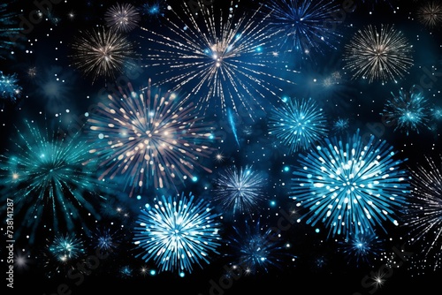 Fototapeta premium Blue and white fireworks light up the night sky