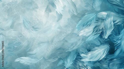 © F, Obraz premium Blue and white gradient feather background pattern, symbolizing elegance and softness