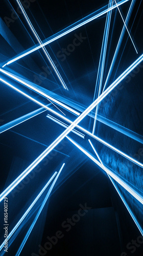 © ABX, Obraz premium Blue and white lasers crossing at sharp angles