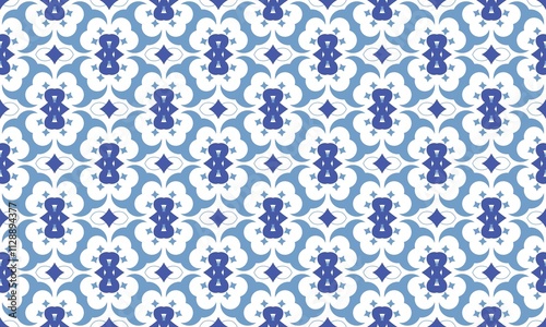 © Benchamat, Fototapeta premium Blue and White Ornamental Seamless Tile Design.