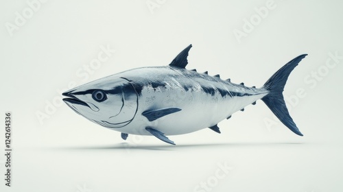 Obraz premium Blue and White Pixelated Tuna 3D Render