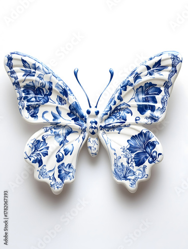 Fototapeta premium Blue and White Porcelain Pattern Butterfly