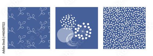 © Carla Nichiata, Fototapeta premium Blue and white seamless pattern vector with leaves and polka dot. Beautiful fashionable collection. Pattern set on blue background.