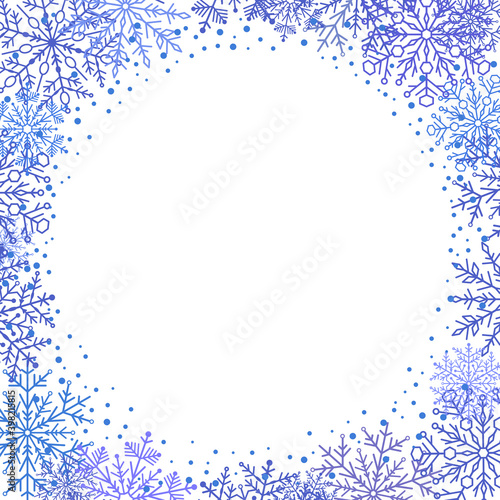 © Fine Art Studio, Fototapeta premium Blue and white vector card for holiday with arabesques and snowflakes. Blue greeting card. Pattern with snowflakes