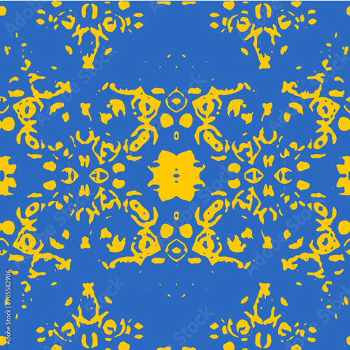 © Natallia, Fototapeta premium Blue and white watercolor ornament painted with watercolor on paper.