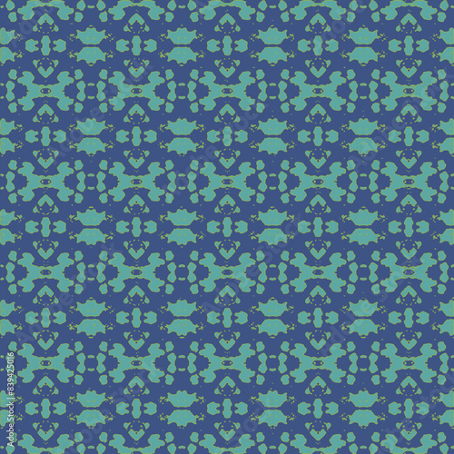© Natallia, Fototapeta premium Blue and white watercolor ornament painted with watercolor on paper.