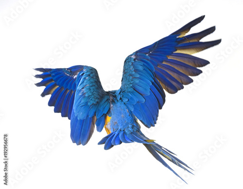 Obraz premium Blue-and-yellow macaw in studio