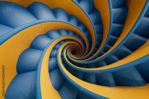 © Jacek, Fototapeta premium Blue and yellow spiral geometric patterns.