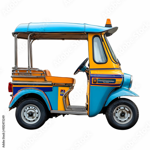 Obraz premium Blue and Yellow Tuk Tuk Photo Isolated on White