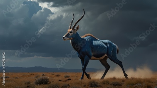 © kucret, Fototapeta premium Blue Antelope Running Through Savanna