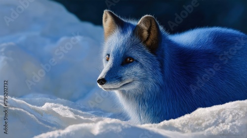 © Iryna, Obraz premium Blue arctic fox in snowy landscape with close-up detail