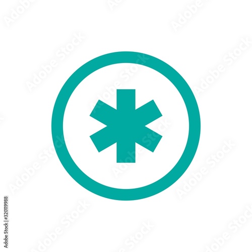 © Ne Mariya, Fototapeta premium blue asterisk footnote in circle icon. Asterisk sign. Flat icon of asterisk isolated on white background.