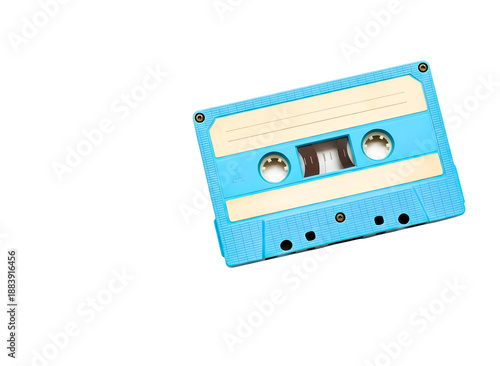 Fototapeta premium Blue audio cassette tape isolated on transparent background