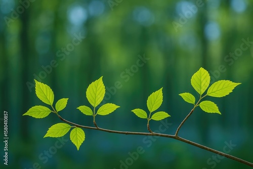 © AkuAku, Obraz premium Blue Backdrop with a Delicate Branch
