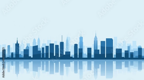 © Sakiyah, Fototapeta premium Blue background, futuristic city skyline, flat design illustration