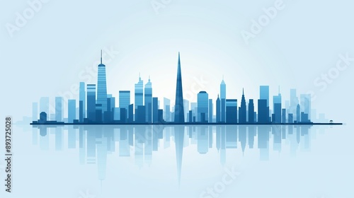 © Sakiyah, Fototapeta premium Blue background, futuristic city skyline, flat design illustration