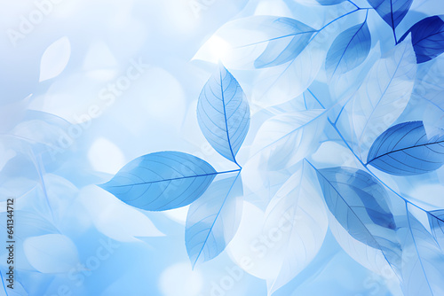 Obraz premium Blue background image, abstract, bright, shiny, beautiful, with faint shadows of glowing white leaves. It is a graphic illustration.