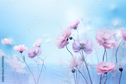 © art, Fototapeta premium Blue background wallpaper with floral pattern