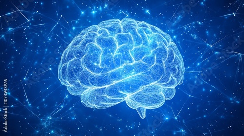 © Rauf, Obraz premium Blue background with brain wave frequency patterns. -