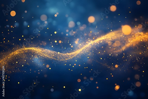 © Chamal, Obraz premium Blue background with golden light streaks Abstract design