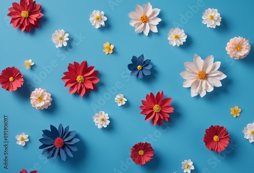 Obraz premium Blue Background with Handmade Paper Flowers: Floral Design