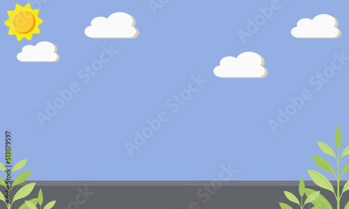© Faried, Fototapeta premium blue background with plants, clouds and sun