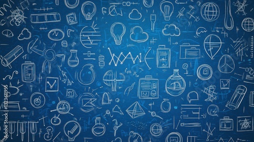 © nangruthai, Fototapeta premium Blue Background with Science and Technology Sketches