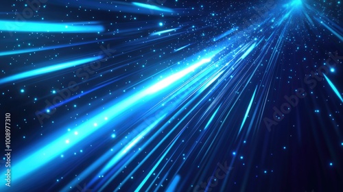 © Alexandr, Naklejka premium Blue background with stars and light streaks