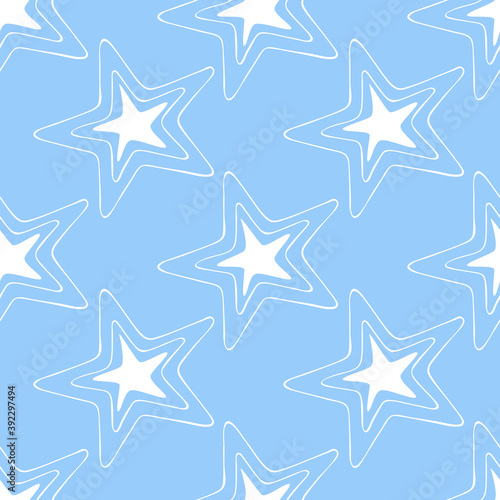 Obraz premium Blue background with stars. White stars. Seamless background. Idea for...