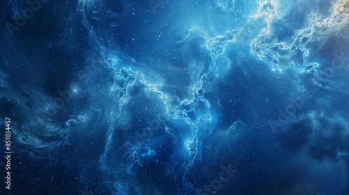 Fototapeta premium Blue background with swirling nebula distant galaxy feel