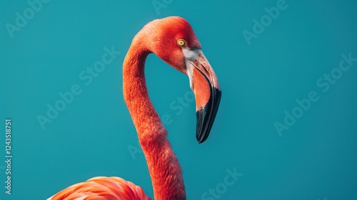 © Eyepain, Obraz premium blue backgrounds wall pink face flamingo side view and copy space minimal theme vibrant