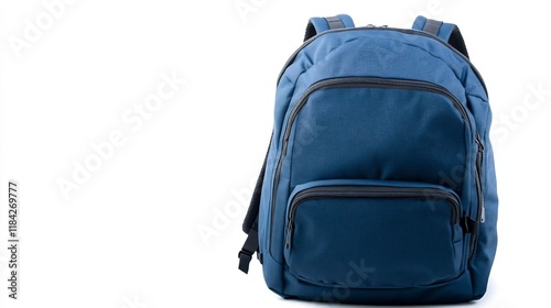 © pkproject, Naklejka premium Blue Backpack with Multiple Compartments Isolated on White Background